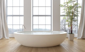 Para hacer resaltar tu bañera, la gestión del espacio tiene que ser una prioridad! Prefieres un baño limpio, discreto y elegante. Olvídate en la medida de lo posible de la decoración, ya que distraerá la atención de tu bañera. Coloca la bañera de isla en el centro de la habitación para que tenga una ubicación privilegiada, o contra un gran ventanal. Por último, si puedes, para sacarle el máximo partido, colócala directamente sobre una plataforma o tarima, el protagonismo está garantizado!